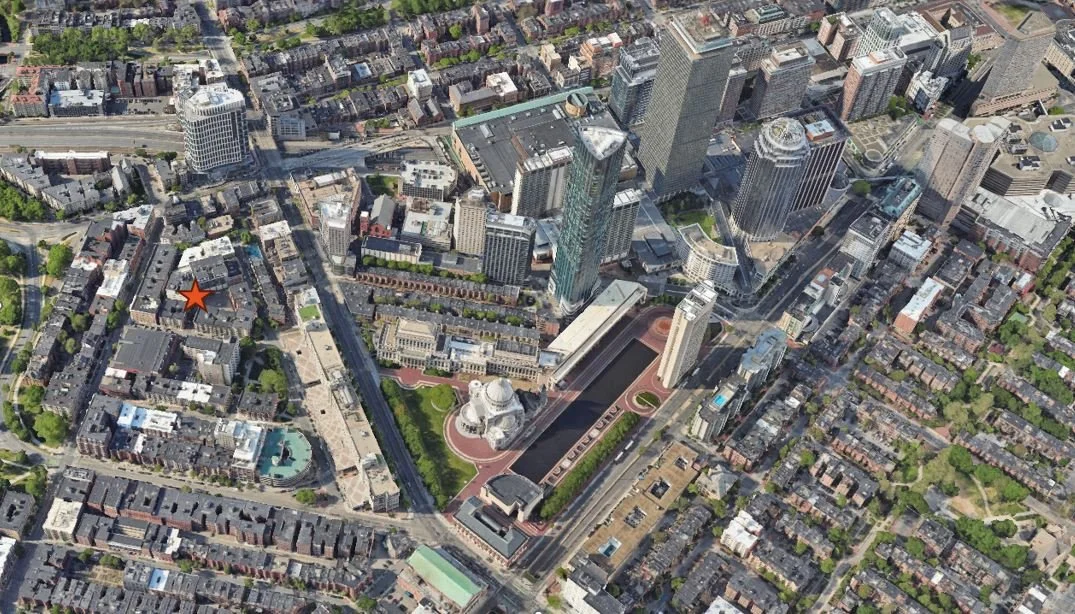 Driving: just a block from Massachusetts Avenue and Boylston Street. A quarter-mile away is the entrance to the Massachusetts Turnpike; a half-mile away is Storrow Drive.